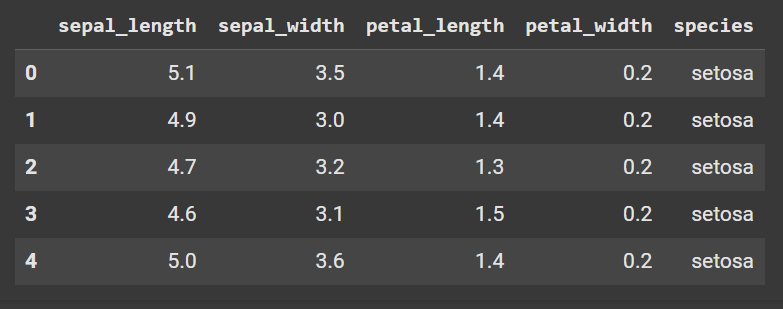 When you first analyze a dataset of continuous variables, I encourage you to start by creating a matrix of histograms and pairwise scatter plots. Let’s use the “Iris” dataset as an example; you can access it via the Seaborn package in Python. Here is the code to obtain the first 5 rows: